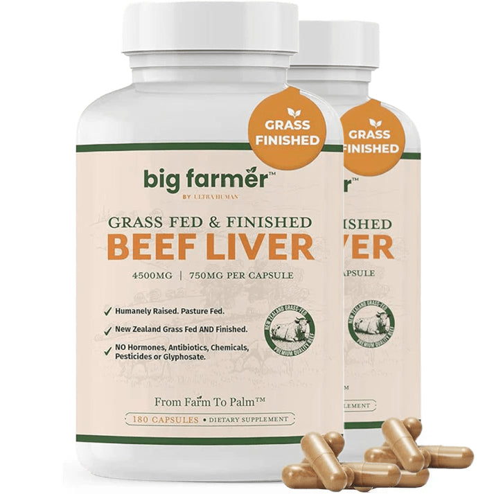 Big Farmer™ Grass-Fed Beef Liver Capsules deliver nature’s most potent nutrients in one convenient dose.