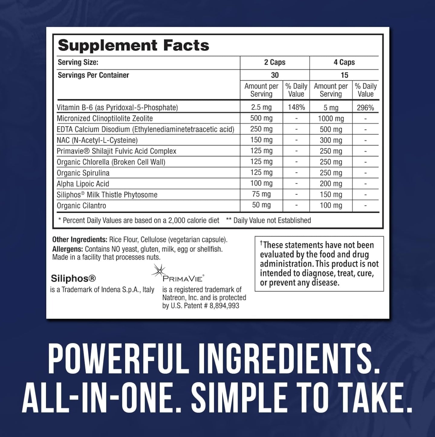 DETOX19 is Ultra Potent, with 1000mg Zeolite, 500mg EDTA, 300mg NAC, 250mg PrimaVie Shilajit and 600mg of Organic Greens. We take Potency, Effectiveness & Your Health very seriously.